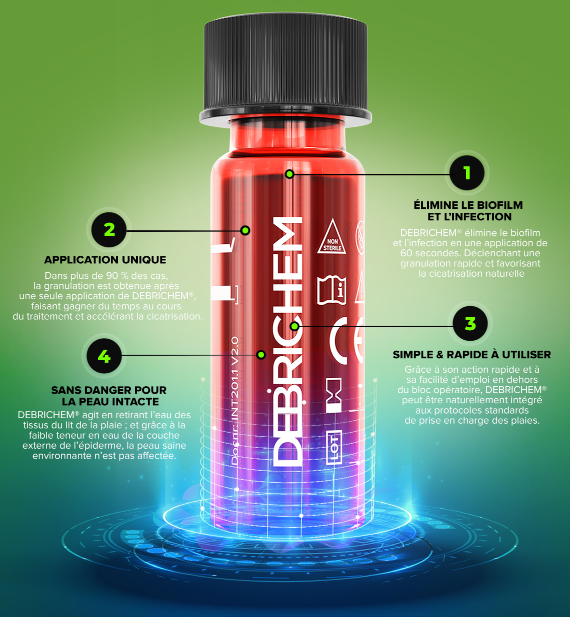 DEBRICHEM® accélère la cicatrisation et améliore l’expérience de soin, créant une situation gagnant-gagnant pour les patients et les soignants.
